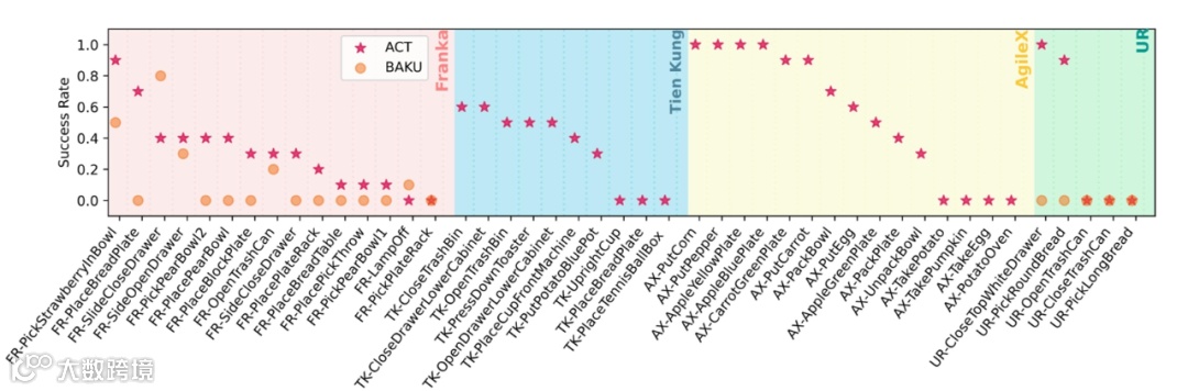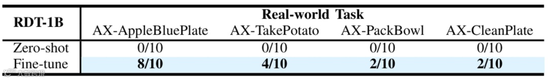 RDT-1B模型:在多项任务中表现优异,例如在将苹果放入蓝色盘子中高达80%成功率。