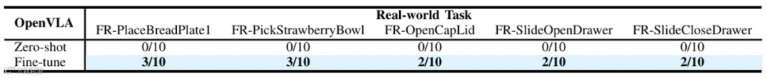 OpenVLA模型:展示了良好的任务适应能力,经过数据集微调后平均成功率提升10%~30%。