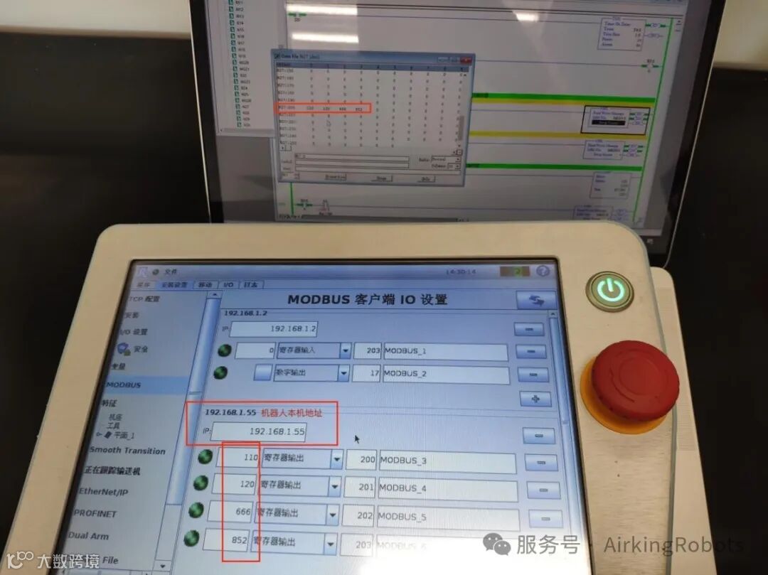 设置PLC、以及机器人的Modbus各项参数,以便监控数据的变化