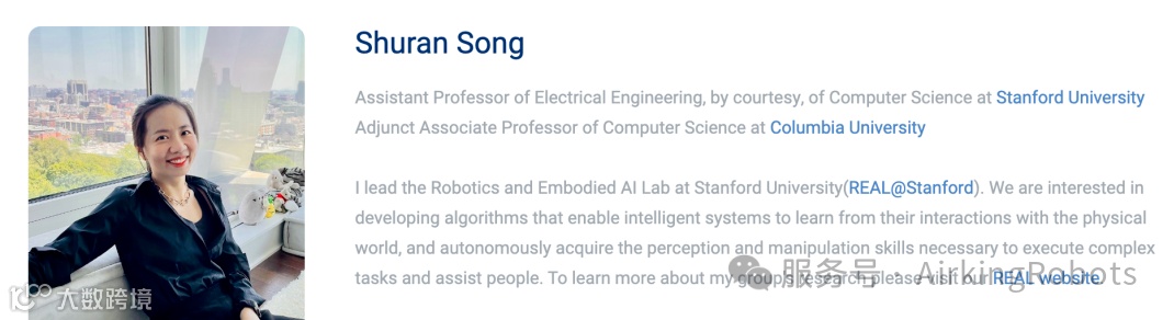 通讯作者为斯隆奖得主、斯坦福助理教授、哥伦比亚大学兼职副教授宋舒然,两位共同一作都是宋舒然的博士生。