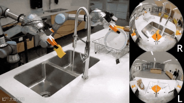 科研人员只需通过机械手进行示范,机器人便能从收集到的数据中学会洗碗,并且具备良好的应变能力。它不仅能顺利完成打开水龙头、抓取盘子、用百洁布清洗的完整动作流程,还能够应对外界的干扰,确保操作的稳定性和精准性。
