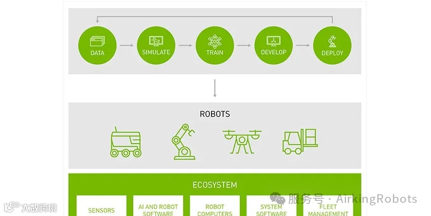 ① 一系列基础模型、机器人工具和 GPU 加速库,包括 Isaac Manipulator 和 Isaac Perceptor,为开发高效的机器人系统提供了强大的支持。