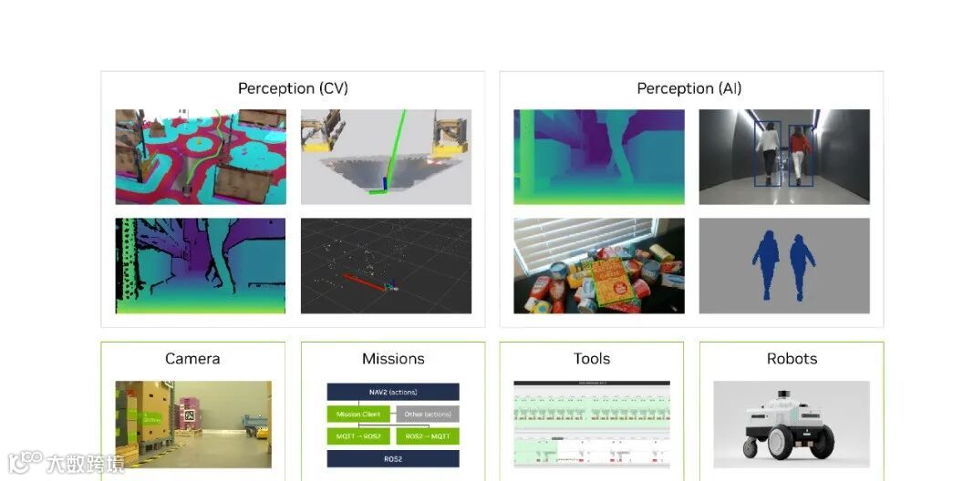 NVIDIA Isaac Perceptor:一个用于机器人感知的模块,集成了先进的视觉和传感器技术,帮助机器人获取和理解环境信息。