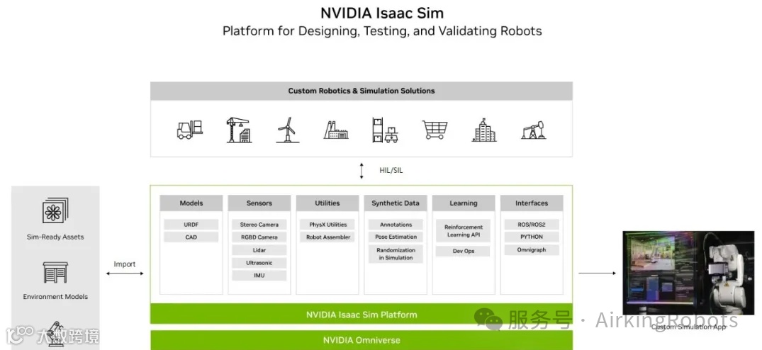 总之,NVIDIA Isaac Sim 为机器人开发提供了一个全面的仿真平台,帮助开发人员在虚拟环境中高效测试、优化和验证机器人系统,从而加速机器人从设计到部署的全过程。