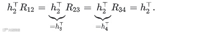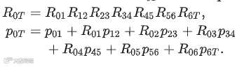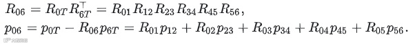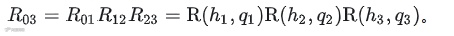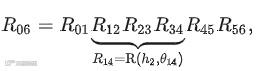 旋转矩阵Rij表示j系相对于i系的姿态,可通过各关节旋转矩阵相乘得到。例如: