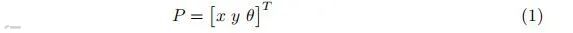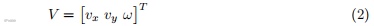 其中 x、y 表示全局位置,θ 为偏航角。速度向量如公式(2)所示: