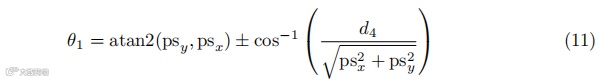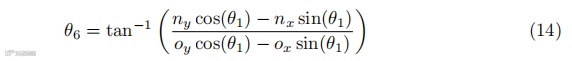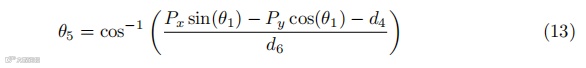 从变换矩阵的旋转部分,我们可以计算出θ5,如下所示: