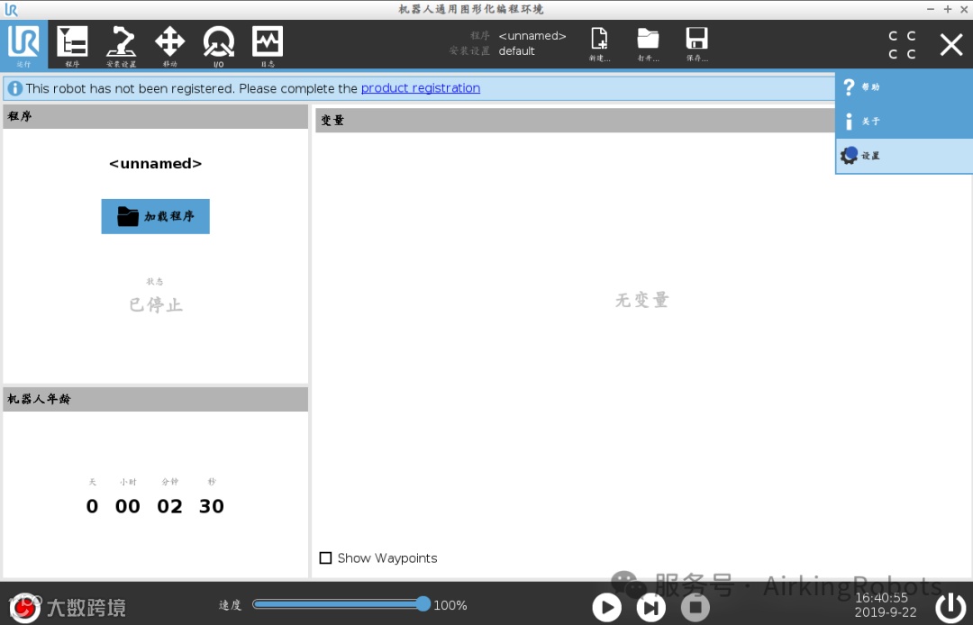 显示/关闭弹出窗口设置用户权限水平(如GUI界面某些部分禁止访问)例如我们要远程加载程序:可以向机器人发送以下命令;