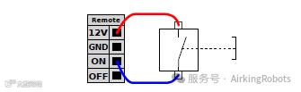下图说明了远程ON 按钮的连接方法。