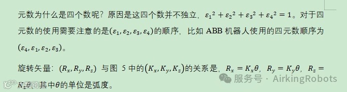 对于本文中提及的几种姿态表示方法他们在不同的场合中被使用,例如X-Y-Z固定角(RPY),Z-Y-X欧拉角比较容易为人所理解,而四元数和旋转矢量则更易在计算机中进行计算。关于他们之间的换算关系超出了本文的范围,读者有兴趣可自行参考机器人学方面的书籍,在下一章节中也会介绍使用UR机器人脚本如何实现不同表示方法的换算。这里指列出几个结论: