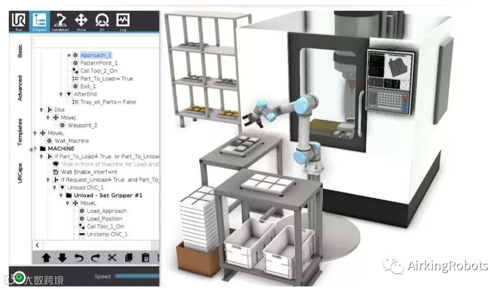 UR机器人提供基于以太网和IO的通信方式,可以实现复杂程序编程、上位机控制、视觉、PLC等常见连接。