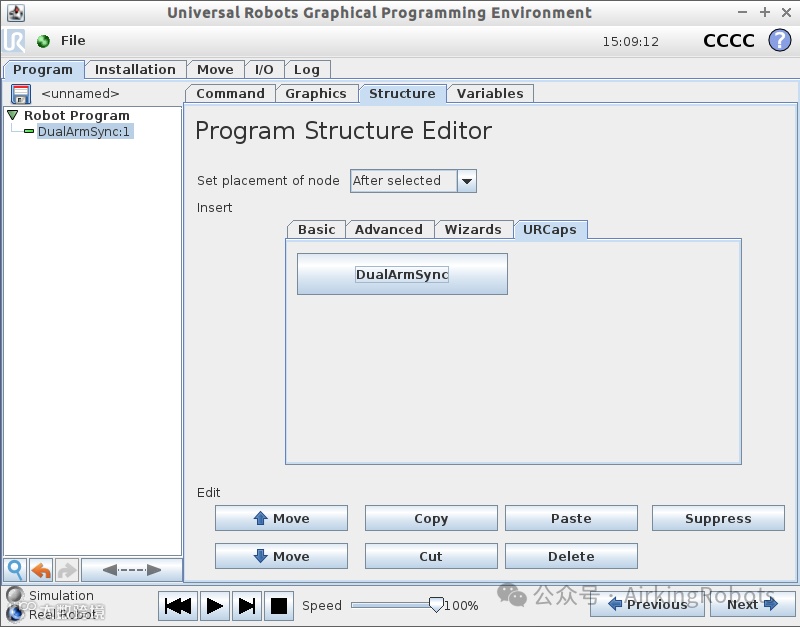 将DualArm URCap拷贝至U盘插入示教器或者通过FTP拷贝至机器人控制器programs目录下然后按照如下安装流程: