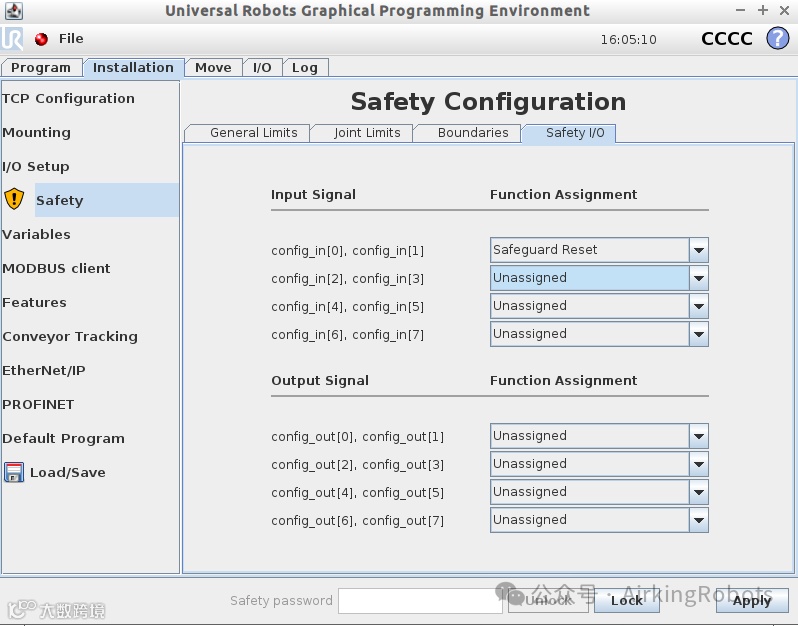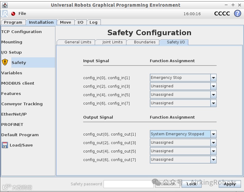 4)急停信号连接好后需要在示教器上安装设置中对Configurable IO进行配置,图 6。