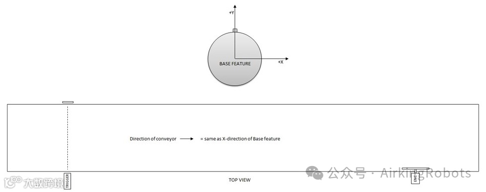 注意:当选择线性输送机时,必须配置直线特征以确定输送机的方向。线的特征应该与传送带的方向平行,在定义线特征的两点之间应该有很大的距离。建议在教这两点时,把工具固定在传送带的一侧,以配置线的特征。当每米编码器产生的计数就是传送机每米的刻度数。