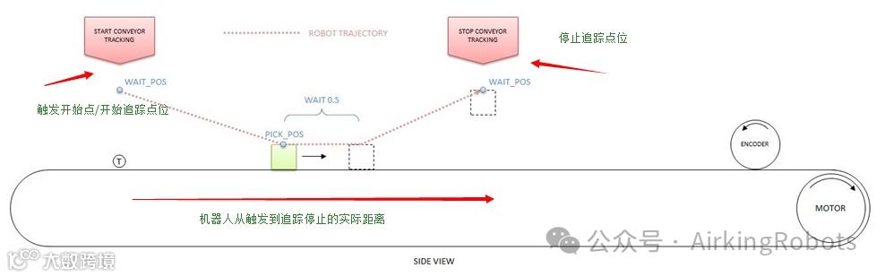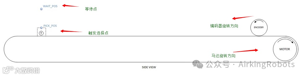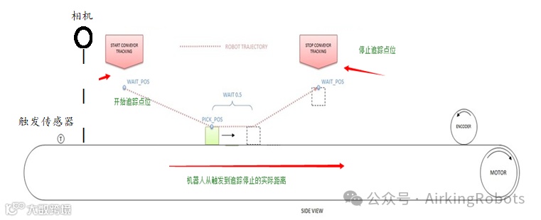 特别说明:方向和tpm很可能必须进行调整/优化,以获得正确的速度,并确保机器人与传送带平行移动。