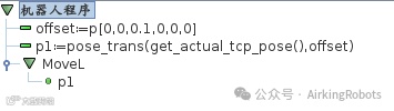 这里要注意的是movel所指的直线是针对设定TCP的直线运动。也就是说当我们用手拖动示教两点让机器人做movel运动是TCP设置的不同会导致机器人运动的轨迹不同。