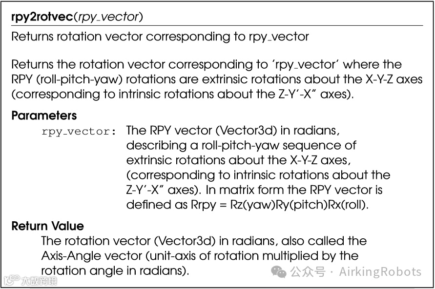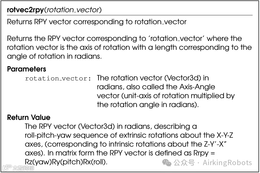不同机器人对于旋转的表达不太一样,优傲机器人采取旋转矢量表示法,同时优傲机器人提供了rpy角和旋转矢量的转换脚本。