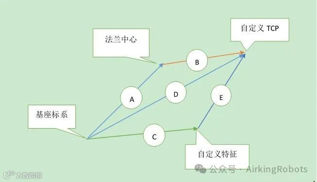 变量路点是用位姿变量表示的路点。我们忽略机器人外形特点,只关注机器人上的两个笛卡尔坐标系,工具坐标系和参考坐标系,机器人的位姿参数就是描述工具坐标系在参考坐标系下的位置。