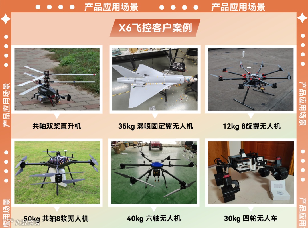 ,从多旋翼到矢量涡喷,从5kg至500kg,不同机型与不同的重量级别,都得到了广泛的验证!赢得了用户的一致信赖与高度认可!