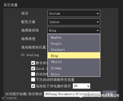 如果出现地图加载不出来的情况,可以点击“常规”->“其他设置”->“地图更换”的选项来选择合适的地图。如果需要使用离线地图,也可以直接下载新图集加载到QGC中使用。