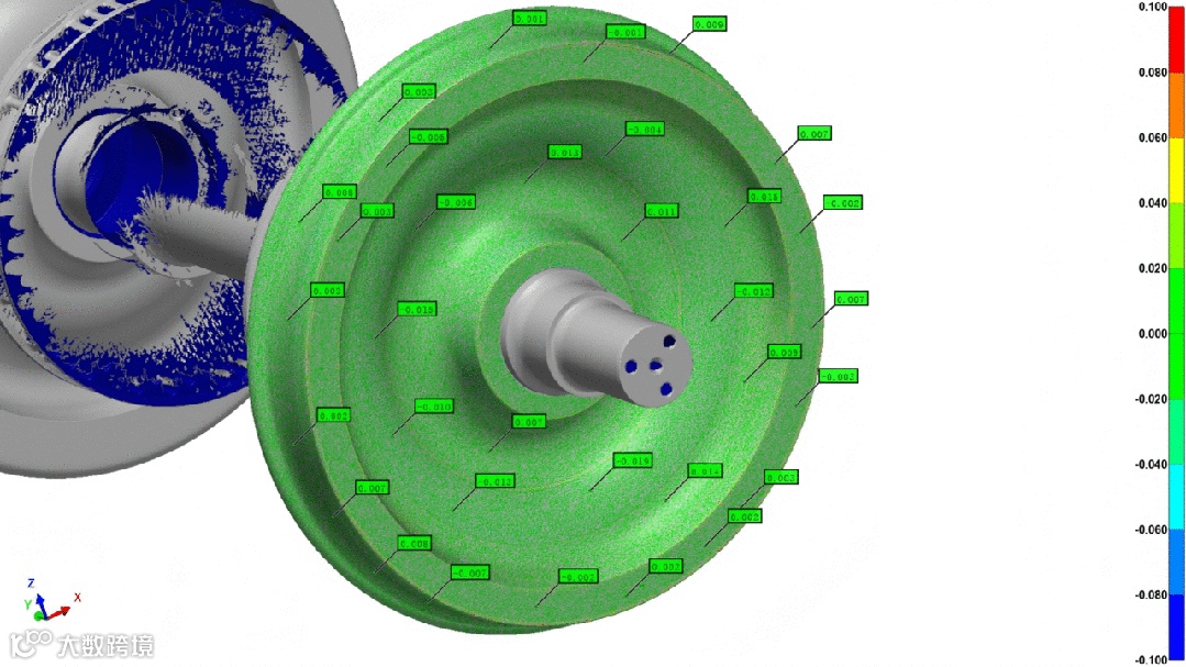 AlphaScan手持式三维扫描仪携高效数字采集方案,精准切入这一场景。凭借非接触式高速扫描,可在数分钟内完整获取轮对包括踏面、轮缘、轮径等复杂轮廓的精准三维数据,过程轻松便捷。