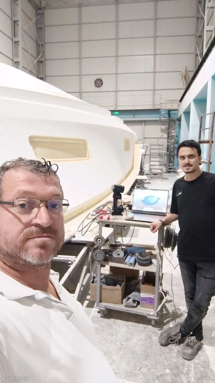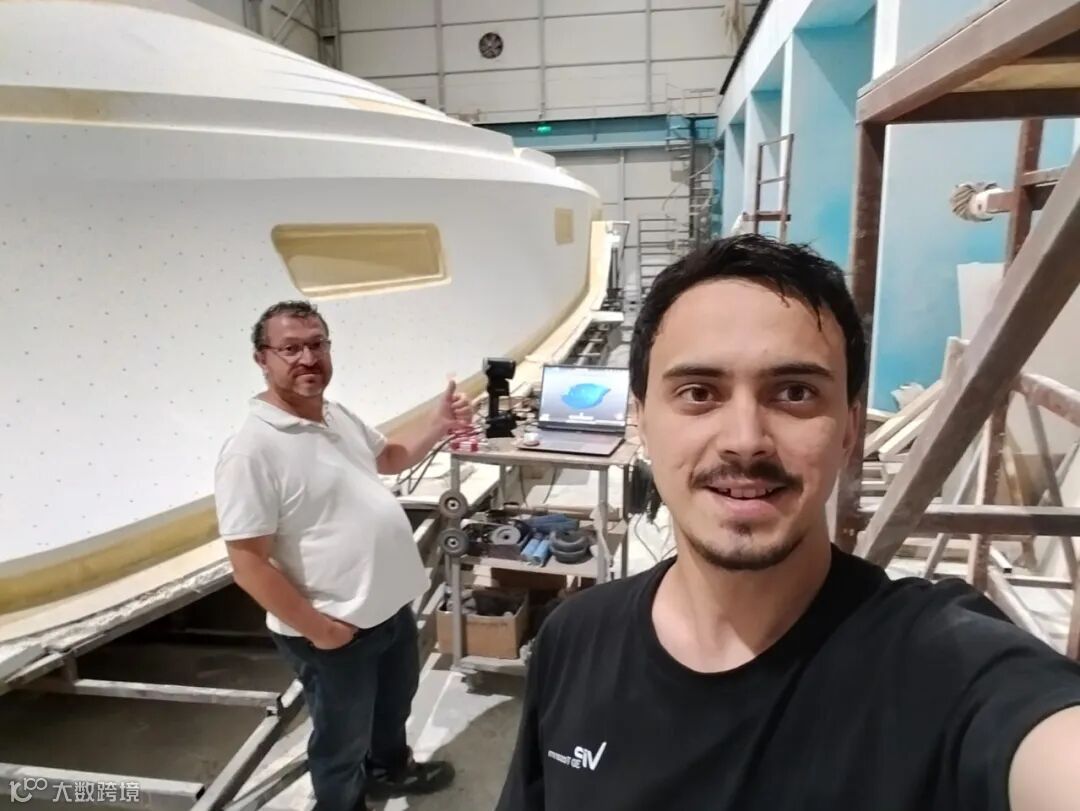 在轰鸣的机械声中,启源视觉土耳其代理商的技术团队正手持AlphaScan三维扫描仪,为14米长的工程船进行扫描作业。