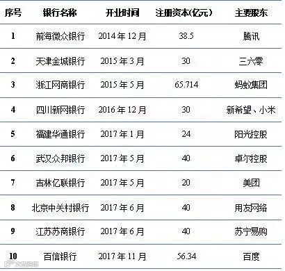 表:我国互联网银行开业时间及注册资本