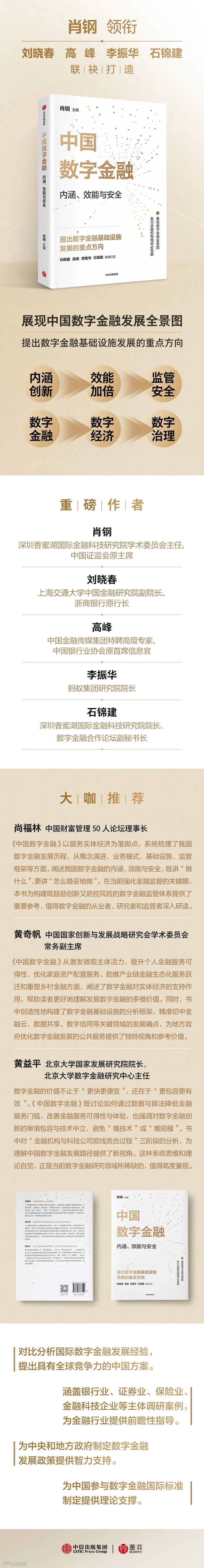 本书研究的创新点包括:一是拓宽了数字金融的新内涵,全面、系统回顾总结了数字金融发展的各个层面,提供了清晰的全景图;二是首次提出了数字金融基础设施的概念,分析了发展现状,指出了重点方向;三是为更好平衡数字金融创新与监管,提高我国数字金融的国际竞争力提出了新思路、新举措。总之,本书从理论到实践,从成果到挑战,从效能到安全,为助力我国数字金融服务高质量发展,并在全球科技浪潮中勇立潮头,做出了全方位、有价值的贡献。