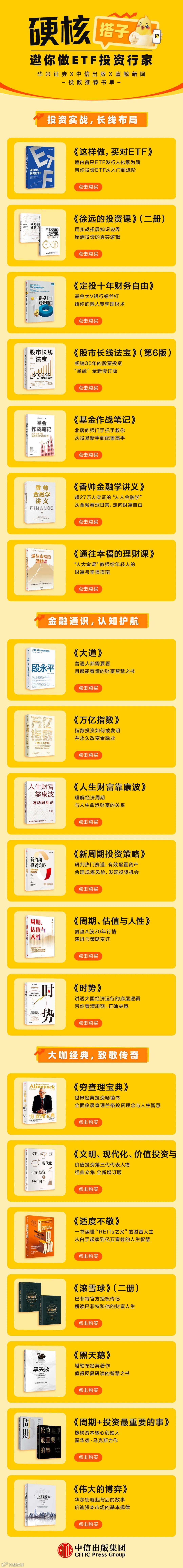 面对指数化投资时代的到来,中信出版以书为媒,将专业机构投资经验转化为易于大众理解的知识体系,以优质内容赋能中国资本市场高质量发展。此次重点推荐的《这样做,买对ETF》一书,从深度解析ETF“家族图谱”,到详细阐述定投、网格交易等实战策略,全方位覆盖投资者从入门到进阶的全流程,帮助其逐步建立ETF投资方法论。