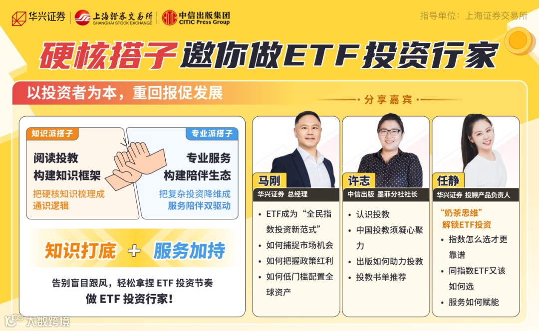 在金融市场复杂多变的当下,投资者对专业投资知识与服务的需求日益迫切。6月中旬,为呼应上交所发起的“以投资者为本,重回报促发展”沪市ETF主题活动,华兴证券与中信出版强强联手,以“硬核搭子,邀你做ETF投资行家”为主题开展投教活动,并联合发布《这样做,买对ETF》《大道》《穷查理宝典》等为核心的投教书单,以阅读投教帮用户构建思维框架,助力资本市场良性发展。