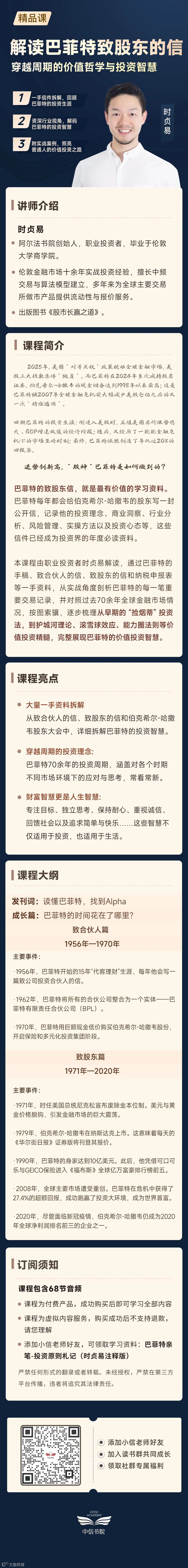 没时间翻书的朋友,也可以收听这本书作者时贞易的精品课,扫描下方二维码,照亮你的价投之路!