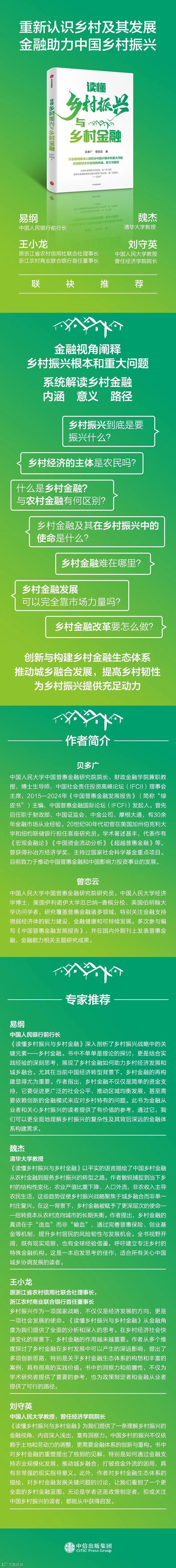 本书不是一本学术专著,不过它也反映了我们近几年的思考和观察。将其作为一本通俗读物呈现出来,旨在能够触达更多读者,以期引发城乡内外的有识之士都来思考和讨论这一话题,共同推进中国的乡村金融建设。