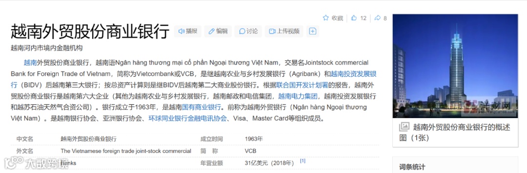 这是一家越南的国有银行,值得一提的是,它还有百度百科。
