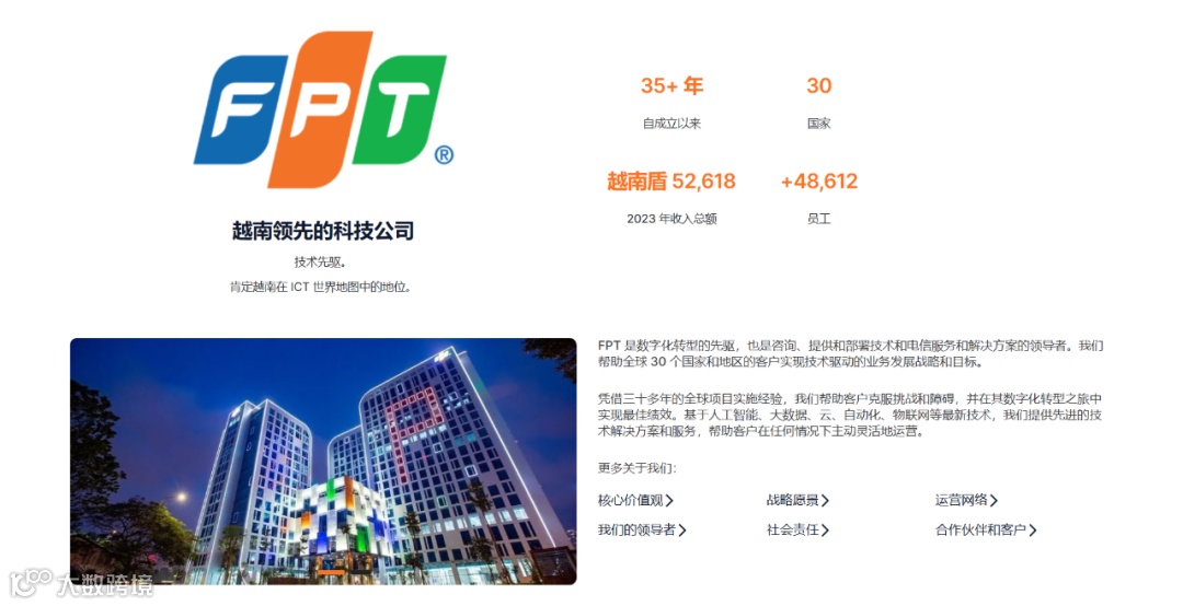 这是一家越南信息技术企业,追求成为数字企业的长期目标,期望在2030年前跻身全球端到端数字化转型服务提供商50强。