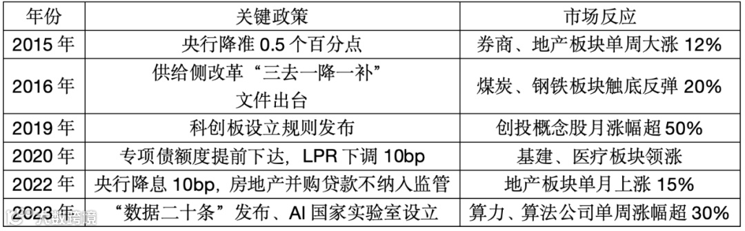 2. 2020年新冠疫情冲击。2月3日单日跌幅达7.7%,但在线教育、医药等宅经济逆势走强。再贷款再贴现定向投放1.8万亿,3月全球流动性危机缓解后外资回流。