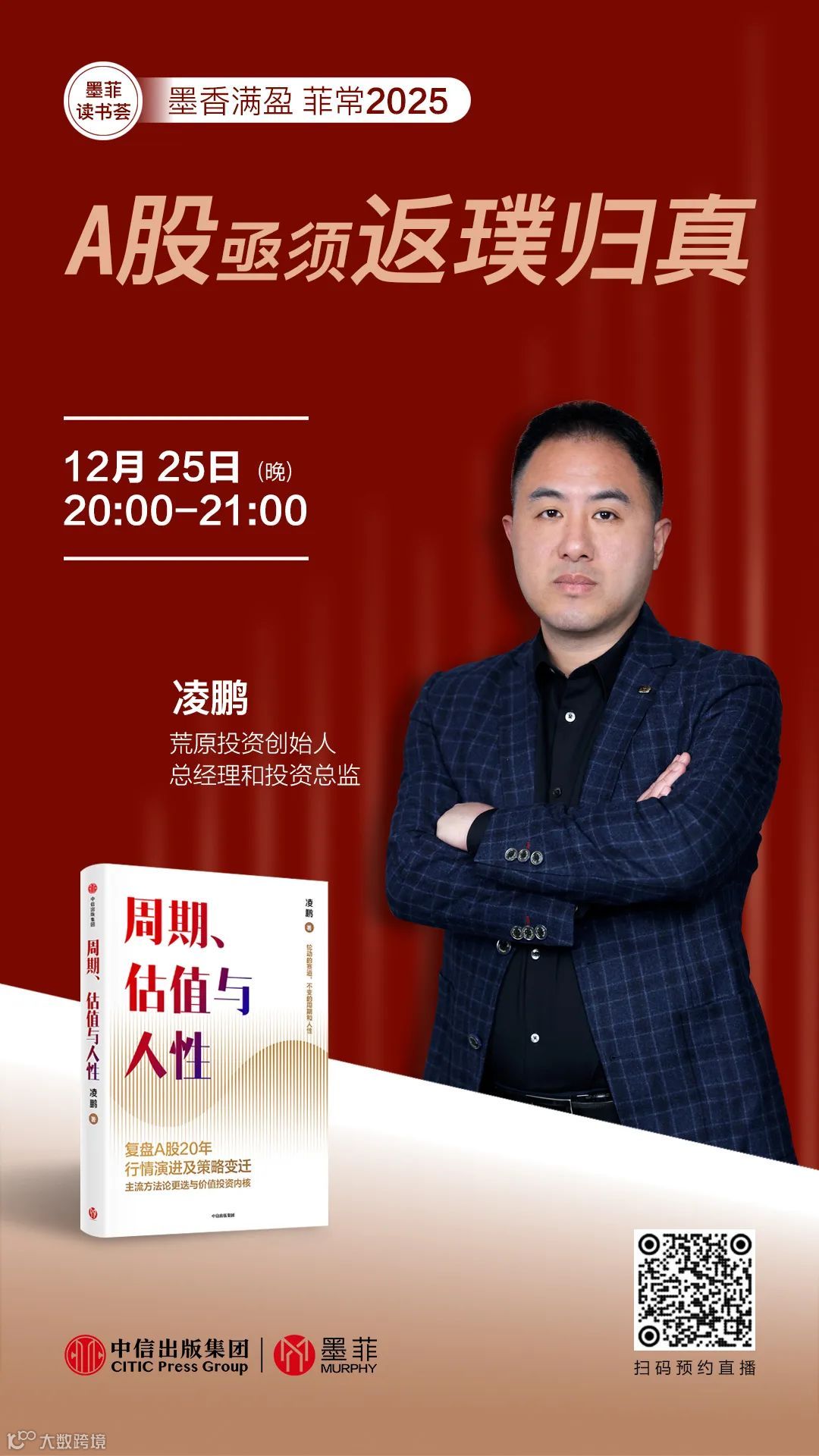 12月25日20:00,中信出版·墨菲特邀荒原投资投资总监、创始人凌鹏先生做客“墨香满盈,菲常2025”墨菲读书荟直播间,为我们详细讲解“A股亟须返璞归真”,陪大家一起守望新一年的投资良机。