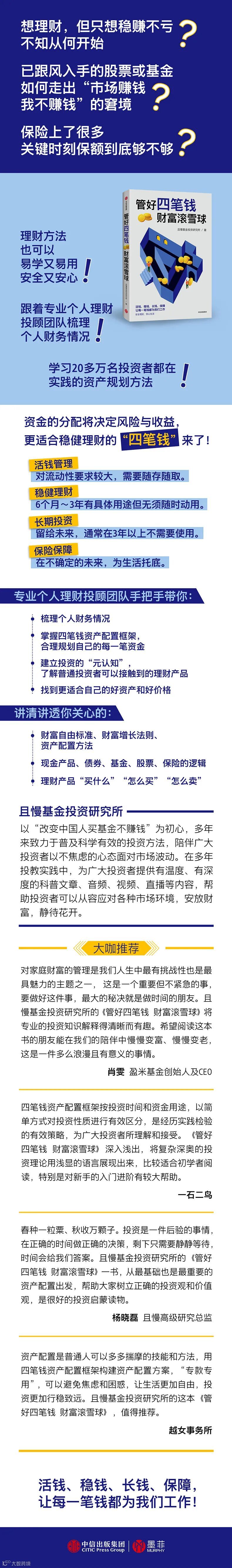 * 来源:《管好四笔钱 财富滚雪球》自序;作者林杰才,盈米基金副总裁、且慢负责人。