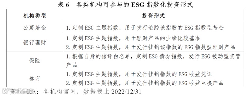 除了上述提及的公募基金、银行理财、社保基金,券商资管等机构也可以通过合作编制ESG指数,积极开拓ESG指数化投资应用场景。