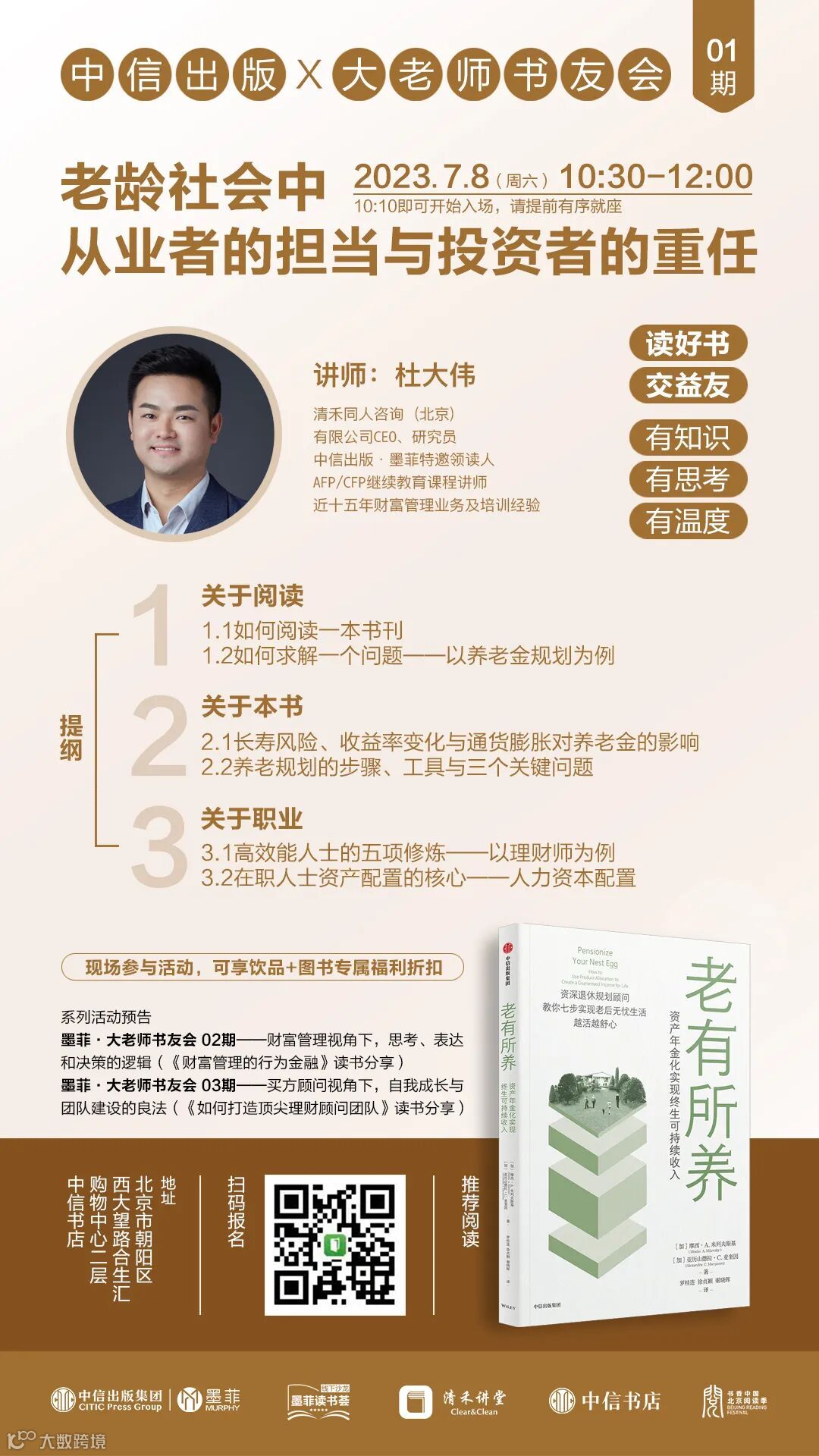 7月8日(周六),邀你走进中信书店合生汇店,共读《老有所养:资产年金化实现终生可持续收入》,借书香,聊成长。