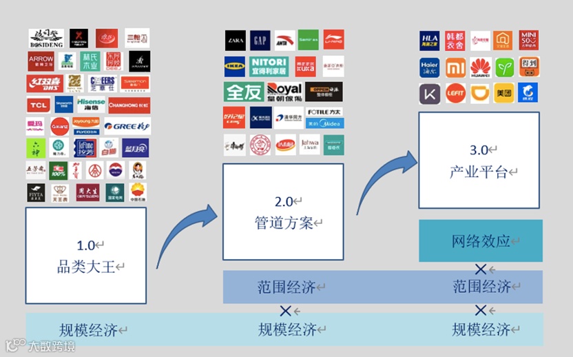 当1.0的品类大王和2.0的管道方案先后遭遇瓶颈之时,新一代的商业物种悄然登场,领先的实体企业以深厚的专业化能力为内核,通过搭建数字化的产业基础设施,并对外开放吸引外部优质合作伙伴的加入,为用户提供极为个性化、多样化的解决方案群,这种模式也被称为产业平台,即实体企业的3.0版本。