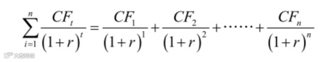 其中,n 表示资产(企业)的寿命,CFt 表示资产在 t 时刻产生的现金流,r 反映预期现金流的折现率。