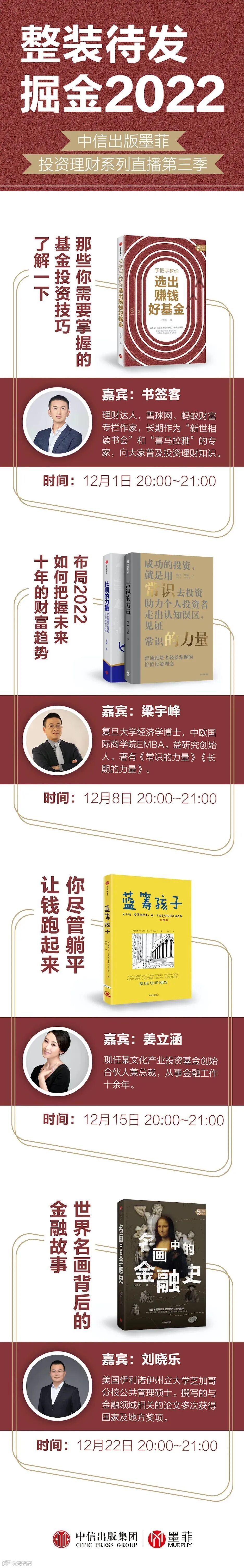 一直致力于给普通投资者带来机构级投研服务的梁宇峰老师,将做客中信墨菲理财投资直播间,给大家好好讲讲如何把握未来的投资机会,让我们早日实现财务自由。