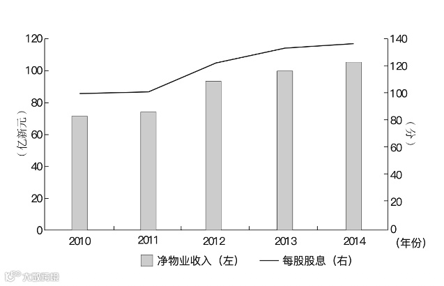 星狮地产信托的资产负债表指标在其基础资产增至25.2亿新元的同时实际上有所改善,杠杆比率也有所降低,从2010财年的30.2%减少到2014财年的29.3%。其利息覆盖率也从4.43提高到6.20。