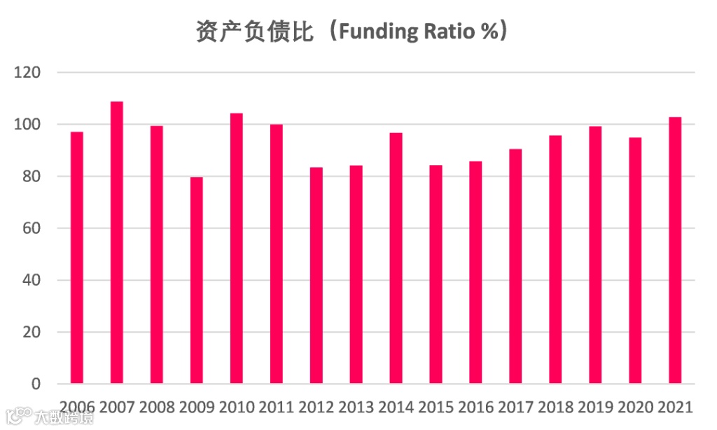 截至2021年3月,英国DB计划总资产约为1.7万亿英镑,DC计划总资产为0.1135亿英镑。DB计划在英国金融市场中占据主导地位,是英国金融市场的系统性风险来源之一。