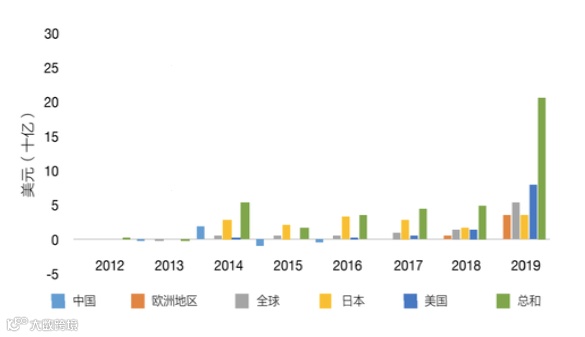 从图中可以看出,全球流入ESG主题ETF的资金规模2019年为205亿美元,为2018年49亿美元规模的四倍,2018至2019年期间流入中国ESG主题ETF的资金增长达464%。