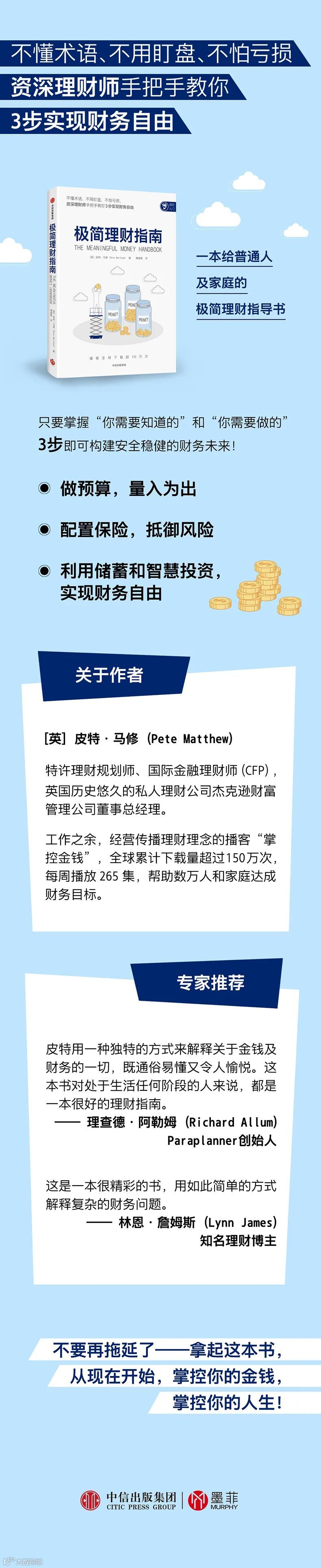 复杂性意味着你需要依赖专家,而雇佣专家是要花钱的。值得庆幸的是,互联网正以前所未有的方式推动个人理财的大众化,以浅显的语言简单、有效地呈现产品。但是还有很多事情需要被解释,这就是“掌控金钱”播客以及这本书存在的原因。