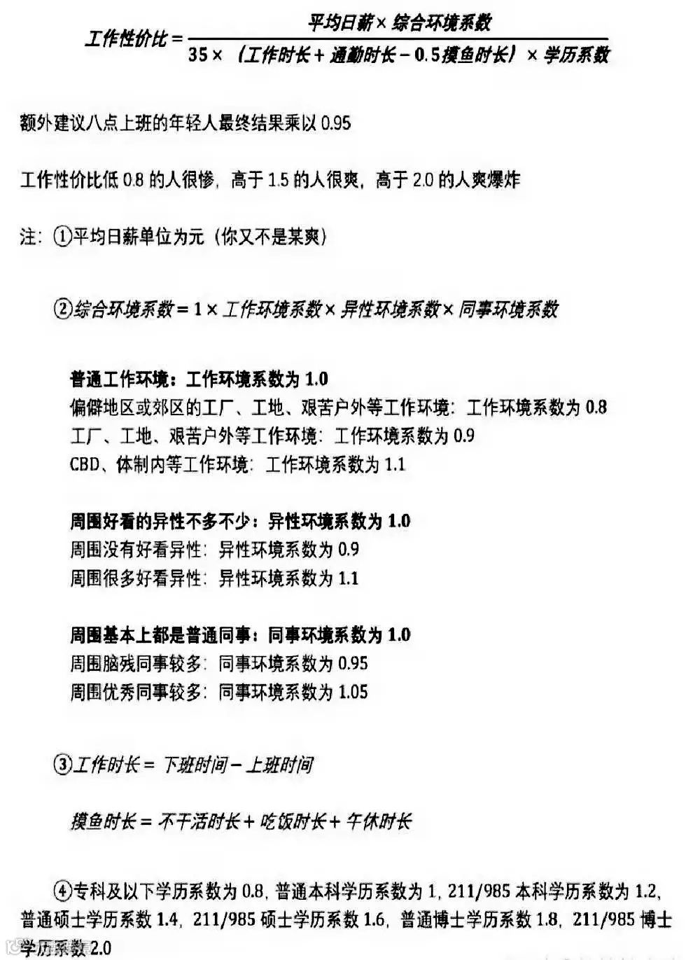 最近身边很多人都晒出了自己工作的性价比,用到了这样一个公式: