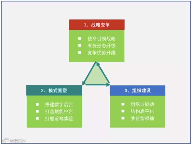 传统产业领袖要转型升级为商业生态体系,并非朝夕之功,需要在战略选择、商业模式和组织领域三路并举,并且相互协调,才能成功驾驭变革。