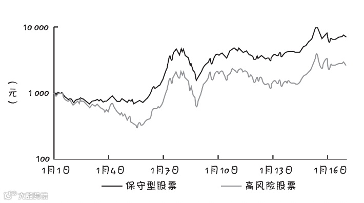 不过坦率地讲,说起这两个动物朋友,我自己也非常好奇到底投资悖论会不会在不同时间和地点的中国股市里再现。在这个市场上,表现领先的保守型股票能够跑赢风险型股票吗?