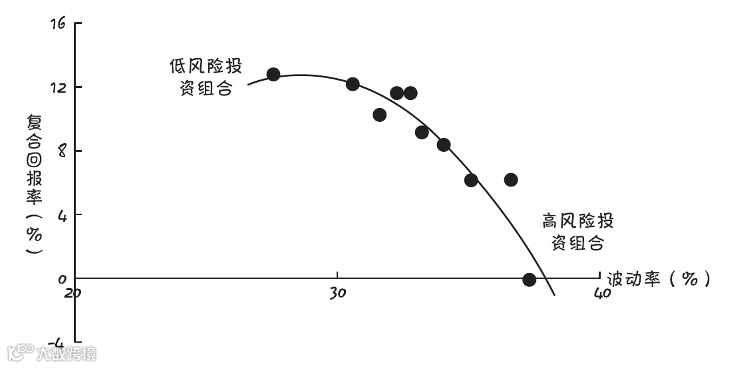 低风险的“乌龟”投资组合提供最高的回报,波动幅度最小。一旦你们的投资组合加大波动性,风险就开始增加,而回报几乎马上就会下降。如果你们问我的话,我会说这显然不是一个理想的结果!